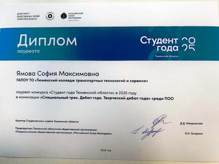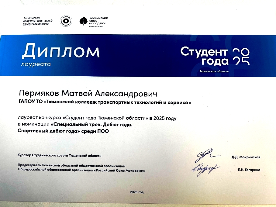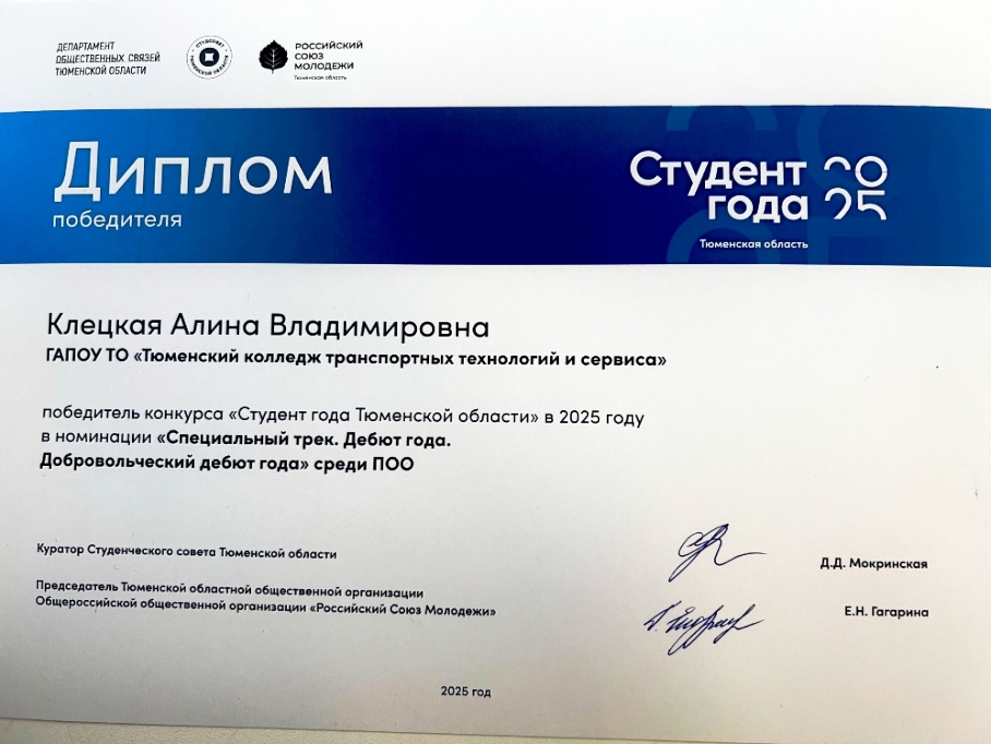 В новой номинации для первокурсников, специальный трек индивидуальной номинации в различных сферах — «Студент года Тюменской области»: