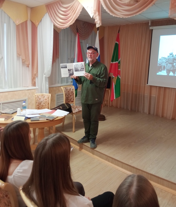 24 октября в музейной гостиной «Память поколений» прошла встреча студентов с тюменским историком, краеведом и писателем Валерием Александровичем Чупиным. Юноши и девушки познакомились с его творчеством – книгами-альбомами об истории культурного наследия нашего города, написанными на основе исторических сведений, архивных документов, рисунков, кинохроники и фотографий.