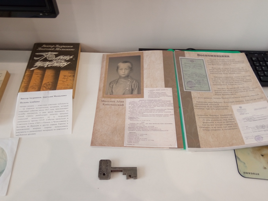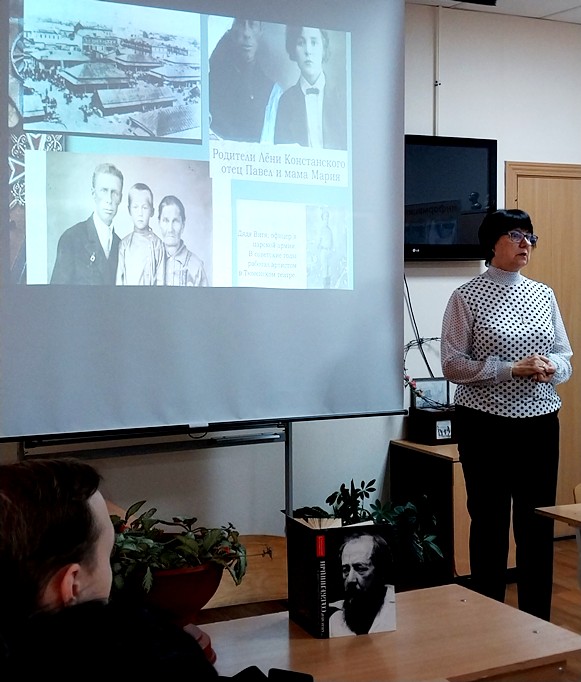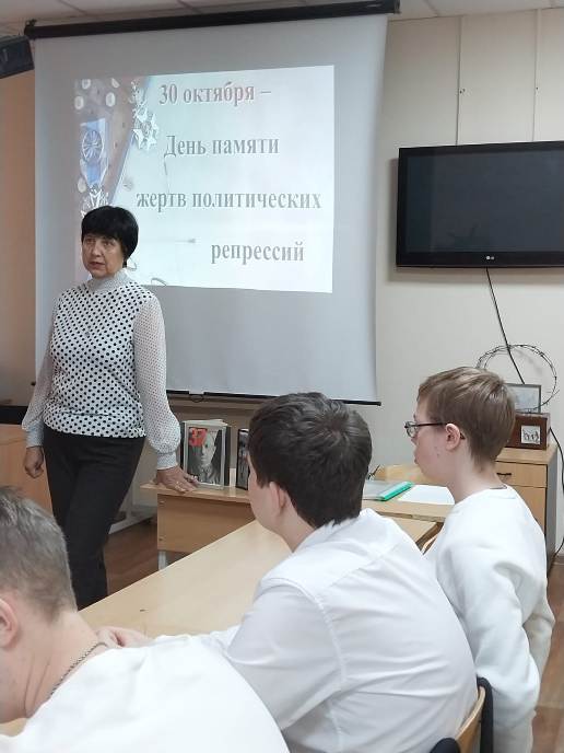 Студенты групп АТ-1-25в, ОП-1-24в, СВ-1-25р, ЭТ-1-25р не только познакомились с выставкой, но и побывали на часе истории «Дело № … Летопись горького времени» по сюжету документального издания Юрия Бутакова «Вкус халвы». Петрова Надежда Владимировна, заведующий информационно-библиотечным центром, рассказала о страшных трагических страницах в истории нашей страны, о нелегкой судьбе мальчика Леонида Лавренова (Констанского), чья семья была подвергнута репрессиям.