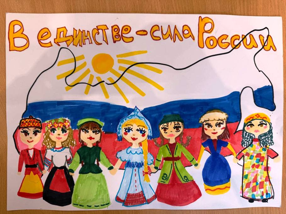 - Рисунок «Многонациональная Россия», в котором участники продемонстрировали свои художественные способности, изображая дружбу и взаимопомощь представителей разных народов.