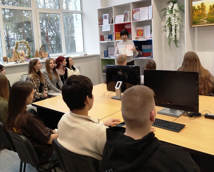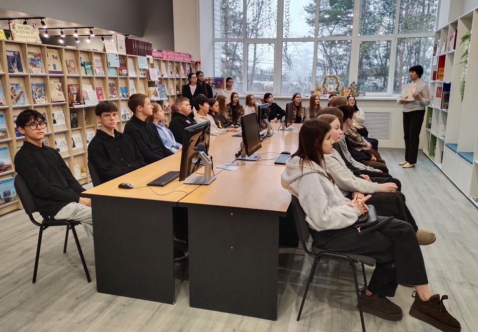 Третьего декабря обучающиеся группы СС-1-25м корпуса по ул. Малиновского, д.7 с преподавателем Синицыной Еленой Владимировной и студенты группы ОД-1-23в посетили библиотеку в одном из корпусов нашего колледжа по улице Станционной, д.34.