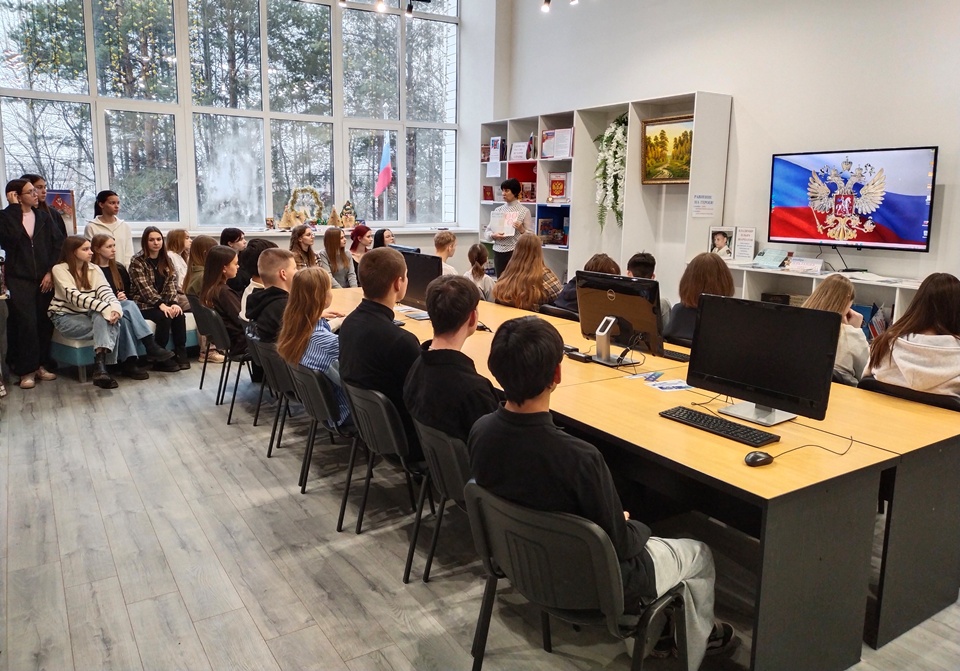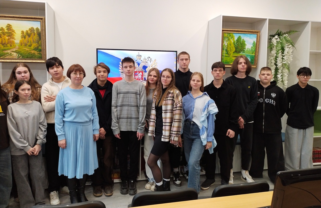 Заведующая информационно-библиотечным центром Петрова Надежда Владимировна показала ребятам постоянную выставку-показ, посвященную символам России и приуроченную ко Дню государственного герба Российской Федерации, отмечаемому ежегодно 30 ноября. Она рассказала об истории российского герба. Ребята посмотрели фильм, из которого узнали, как изменялся внешний вид российского герба в разные исторические периоды развития нашей страны.
