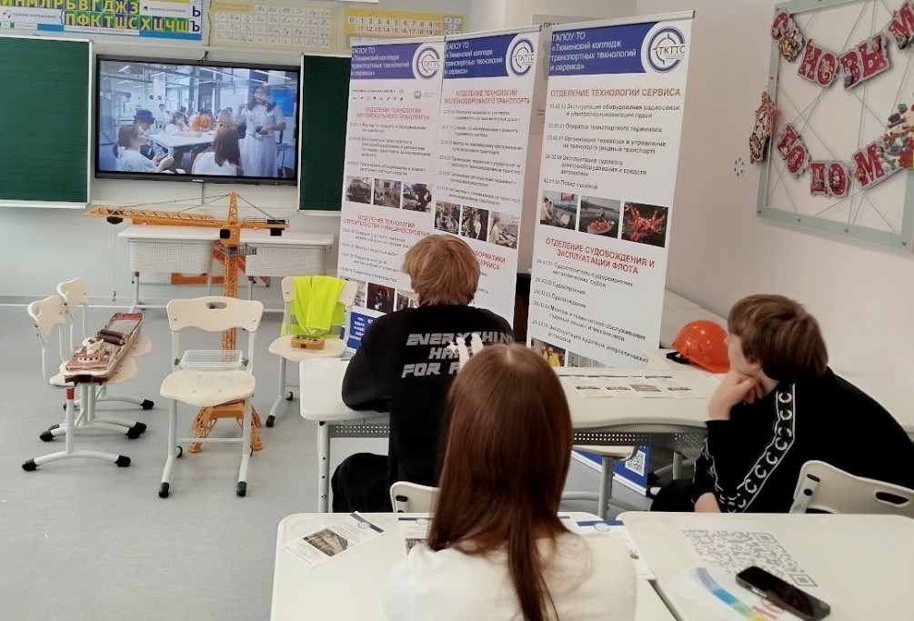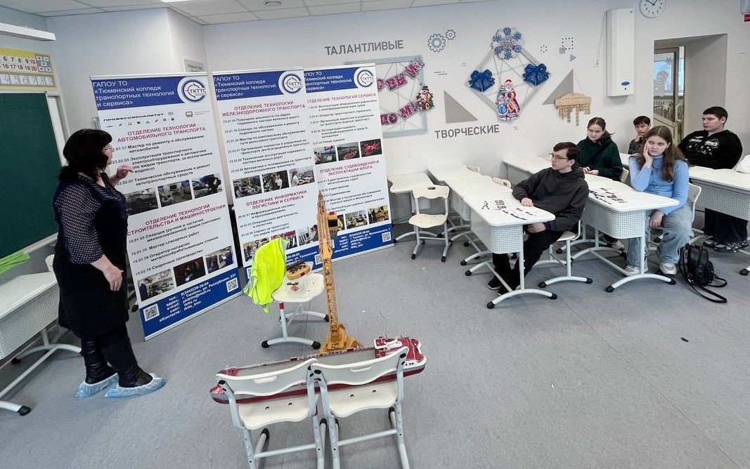 Представители Тюменского колледжа транспортных технологий и сервиса — Крекнина Элла Александровна и амбассадоры федерального проекта «Профессионалитет», национального проекта «Молодежь и дети» подробно рассказали школьникам и родителям о проекте, представили спектр профессий и специальностей, доступных в колледже, а также осветили возможности построения карьеры для будущих выпускников.