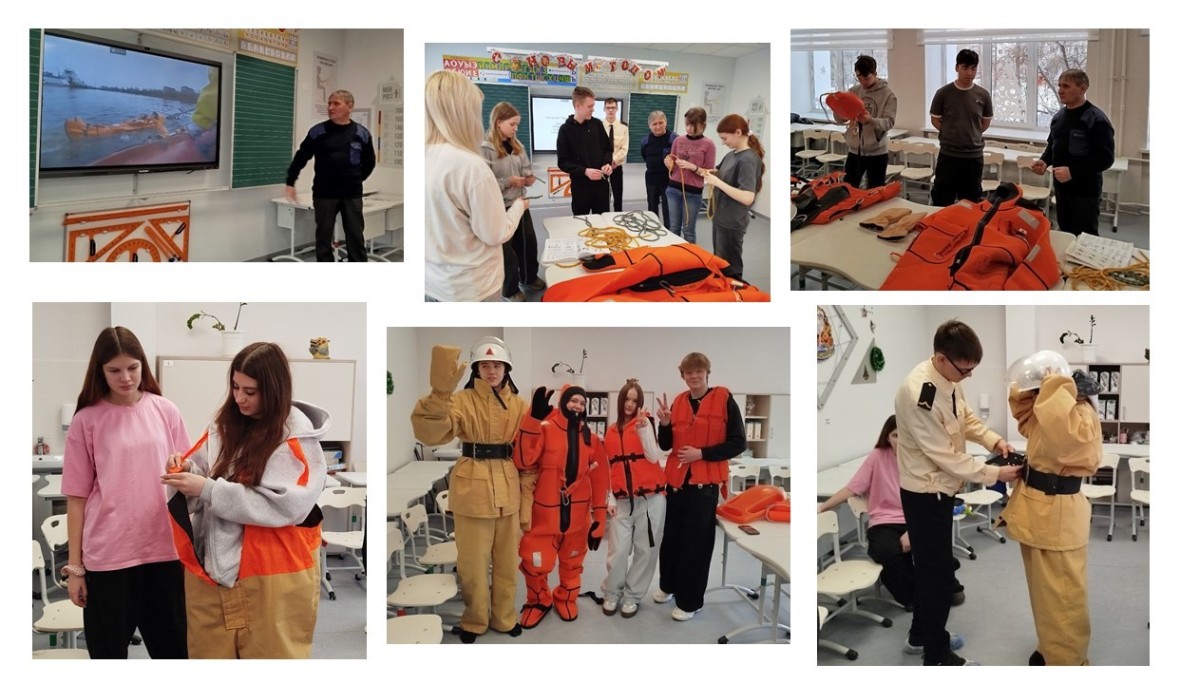 Мастер-класс «Безопасность жизнедеятельности на судне» представил Осадчук Валерий Иванович. Участники мастер-класса узнали, что безопасность жизнедеятельности на судне включает меры по обеспечению безопасности пассажиров и экипажа в аварийных ситуациях, а также правила техники безопасности, меры пожарной безопасности и требования к спасательным средствам. Школьники примерили костюмы индивидуальной защиты на судне, спасательные жилеты, также получили навыки по вязанию морских узлов.