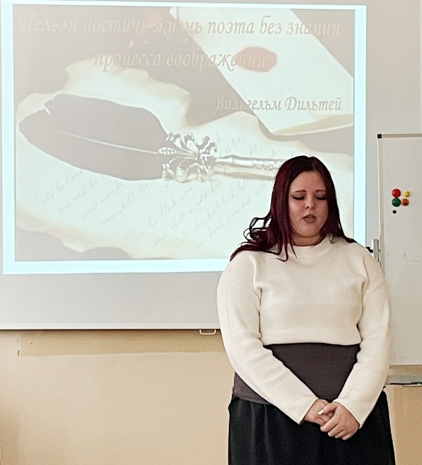 21 марта, в Международный день поэзии, в группе СТ-2-25в 1 курса под руководством преподавателя Зориной Ирины Александровны состоялось поэтическое рандеву «В гостях у поэтов Серебряного века...».