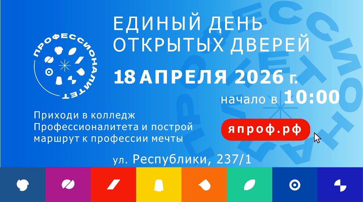 Тюменский колледж транспортных технологий и сервиса в рамках Федерального проекта «Профессионалитет» национального проекта «Молодежь и дети» приглашает обучающихся 8-11-х классов, а также их родителей на Единый день открытых дверей.