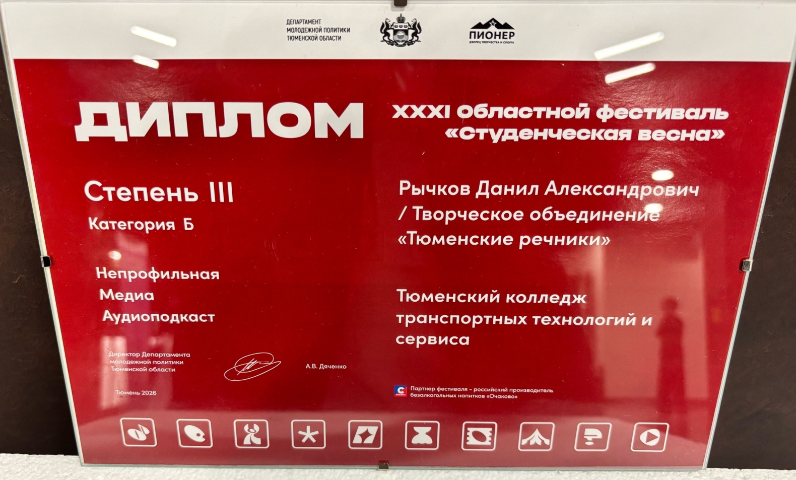 - Диплом 3 степени — Аудиоподкаст — Рычков Данил Александрович.