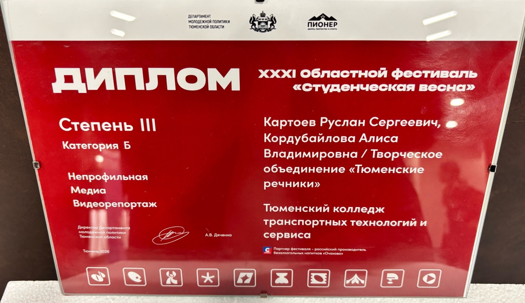 - Диплом 3 степени — Видеорепортаж — Картоев Руслан Сергеевич, Кордубайлова Алиса Владимировна.