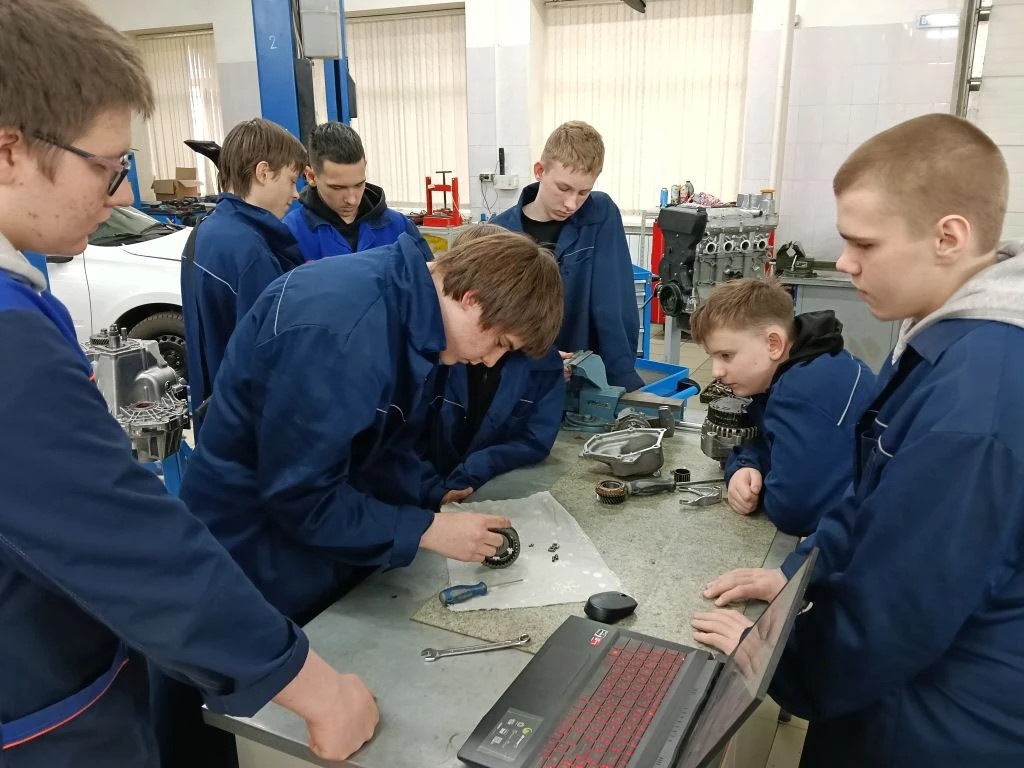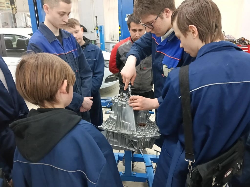 В рамках Единого дня открытых дверей в колледже для школьников и родителей прошли профессиональные пробы по ремонту механической коробки перемены передач и основам кузовного ремонта.