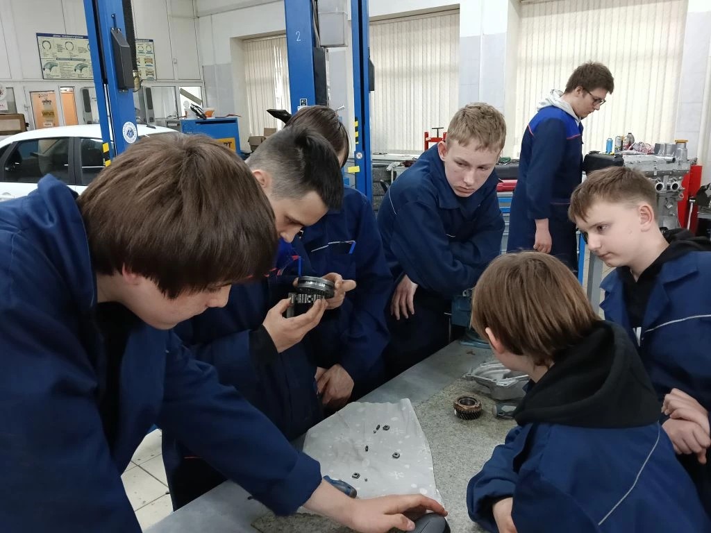 Ребята познакомились с одним из этапов ремонта механической коробки перемены передач: разборка муфты переключения пятой передачи, дефектовка деталей данного узла, сборка узла согласно технической документации. Муфта переключения пятой передачи — критически важный элемент КПП, который обеспечивает включение повышающей передачи, экономию топлива, комфорт вождения и долговечность трансмиссии. Ее исправность напрямую влияет на управляемость автомобиля и расход топлива на высоких скоростях. Интересно было наблюдать за работой участников, удивляясь их вниманию и терпению.