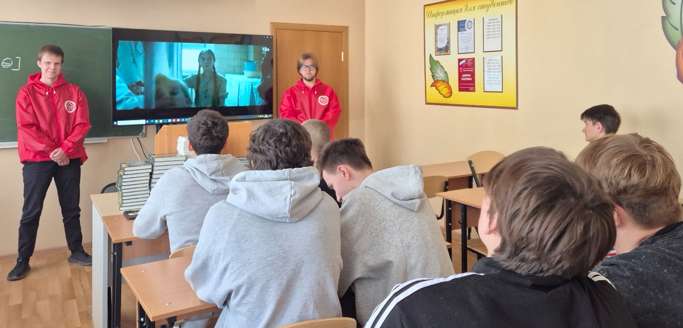 В рамках часа памяти «Без срока давности» волонтеры колледжа совместно ссоветником директора по воспитанию Еленой Федяковой организовали просмотр и обсуждение документального фильма «Приют смерти».