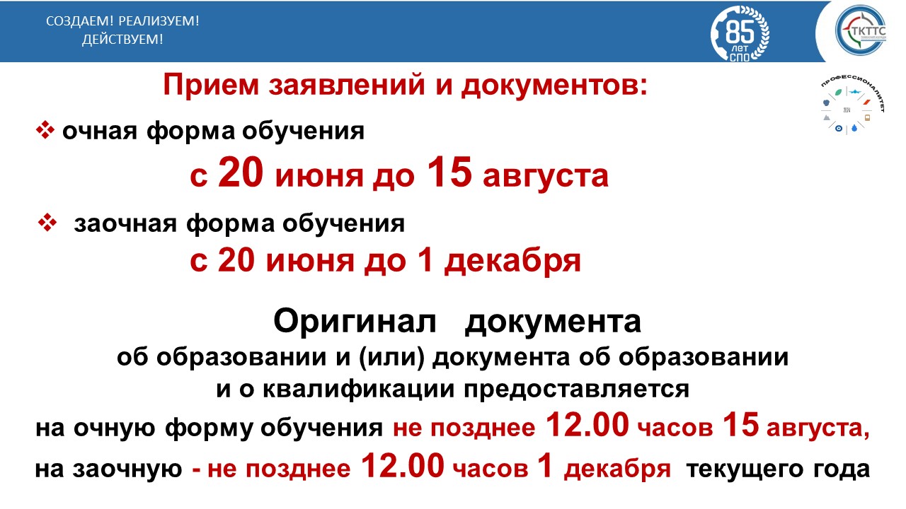 Прием документов и заявлений на обучение осуществляется: