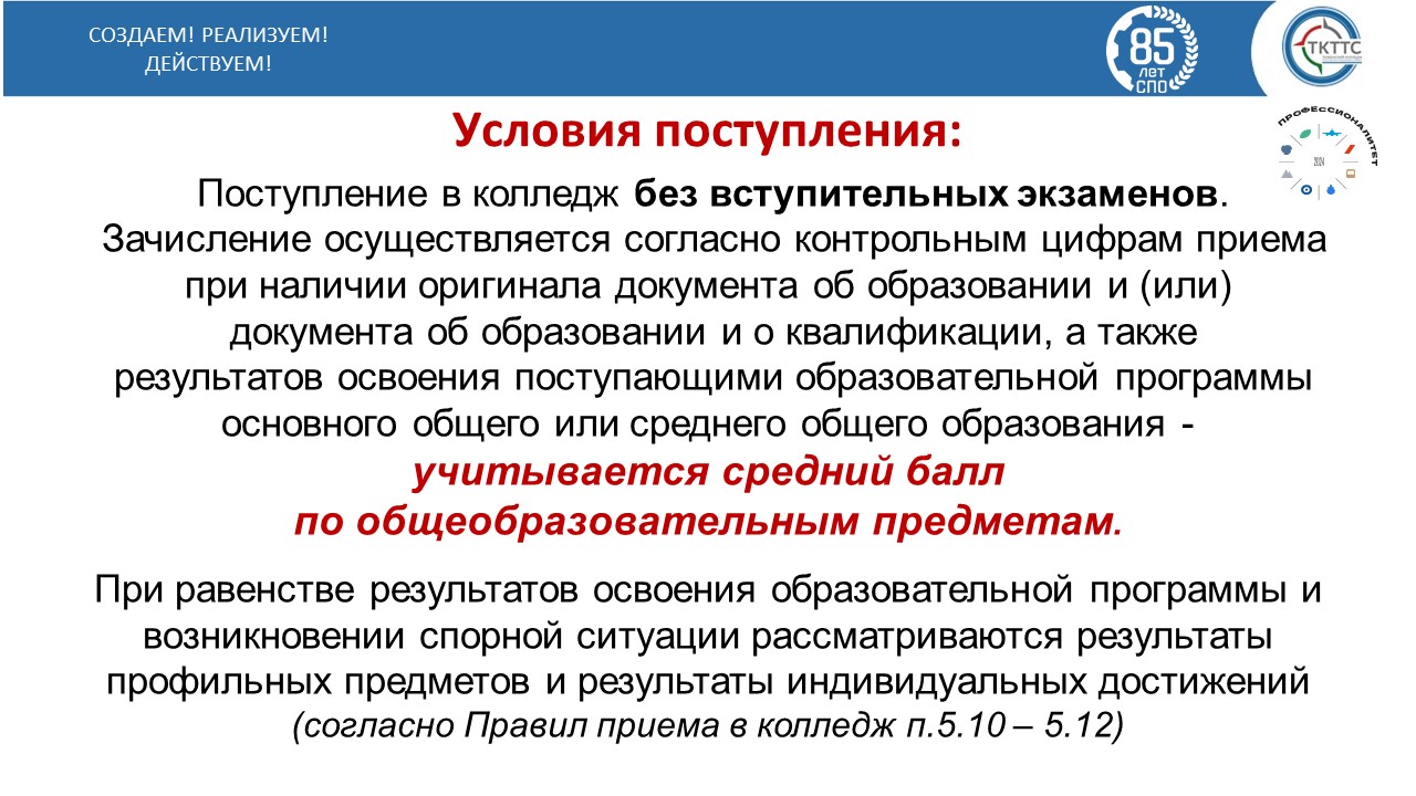 - Информация о результатах приема по каждой профессии, специальности СПО.