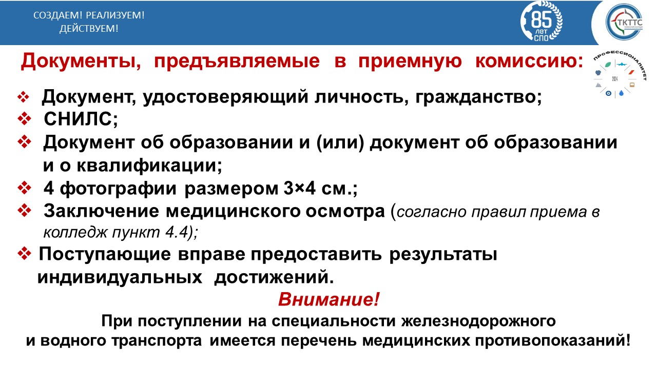 - Заявления и перечень документов, предъявляемые в приемную комиссию