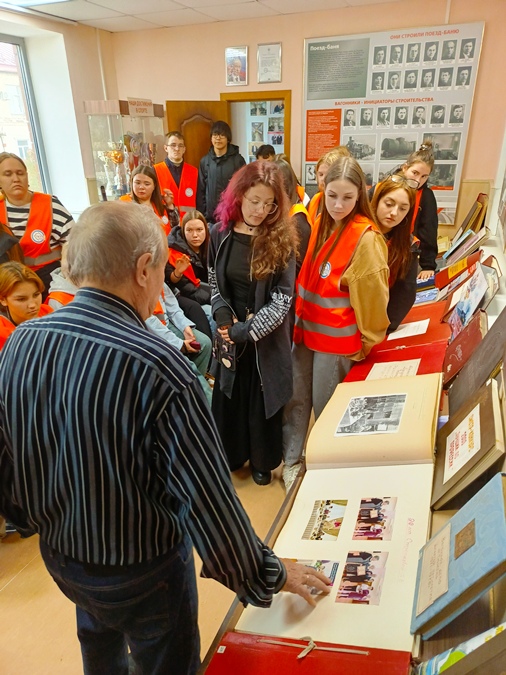 Кроме того, юноши и девушки побывали в музее Вагонного участка Тюмень. Экскурсию провел Калугин Рудольф Иванович, занимавший должность начальника вагонного участка Тюмень с 1977 по 1983 года, который поведал истории из жизни, профессионального опыта и интересные фаты работы депо в тяжелые военные годы.