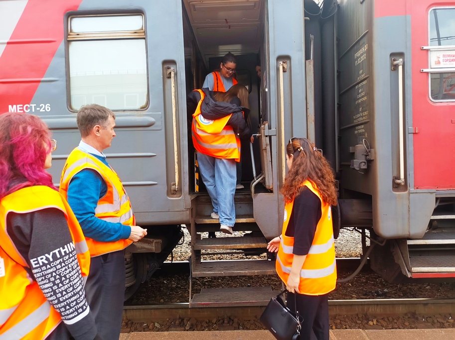Погружением в профессию «Проводник пассажирского вагона», в рамках специальности 43.02.06 Сервис на транспорте (по видам транспорта), стала экскурсия в Вагонный участок Тюмени и в резерв проводников студентов групп СТ-1-24в, СТР-1-25в (руководители Никитенко Антонида Борисовна и Гордузова Ольга Сергеевна).