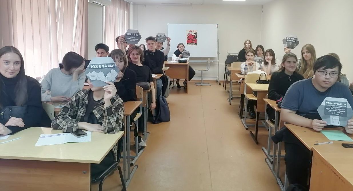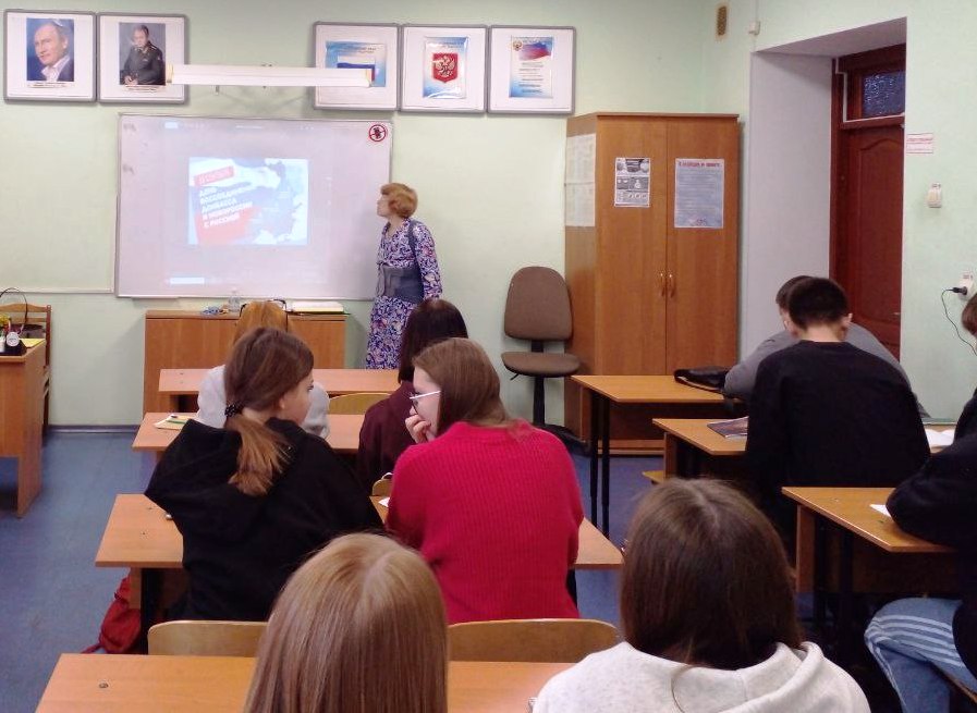 Уроки прошли в интерактивном формате: студенты работали с картами, смотрели архивные фото и видеоматериалы, участвовали в викторинах и дискуссиях. Такой подход позволил не просто получить информацию, а по-настоящему прочувствовать историческую значимость произошедшего воссоединения.
