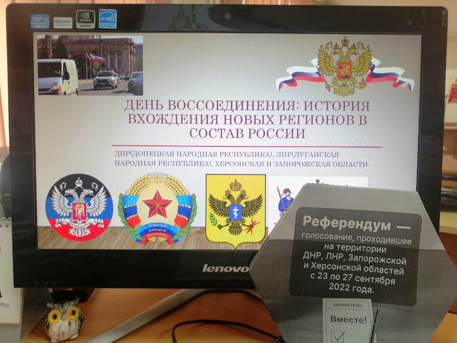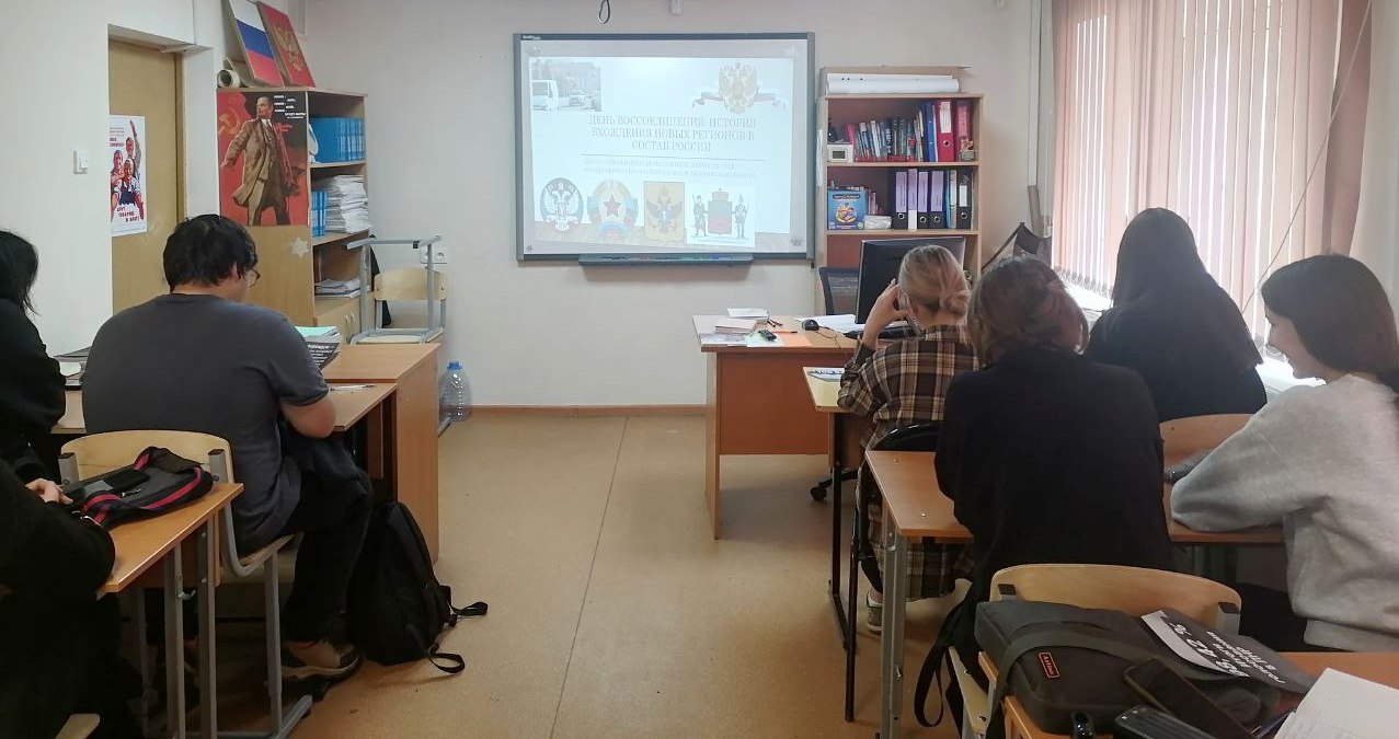 В колледже преподаватели истории провели уроки-путешествия ко Дню воссоединения ДНР, ЛНР, Запорожской и Херсонской областей с Российской Федерацией, который был посвящен истории, культуре и героическому наследию ДНР, ЛНР, Херсонской и Запорожской областей.