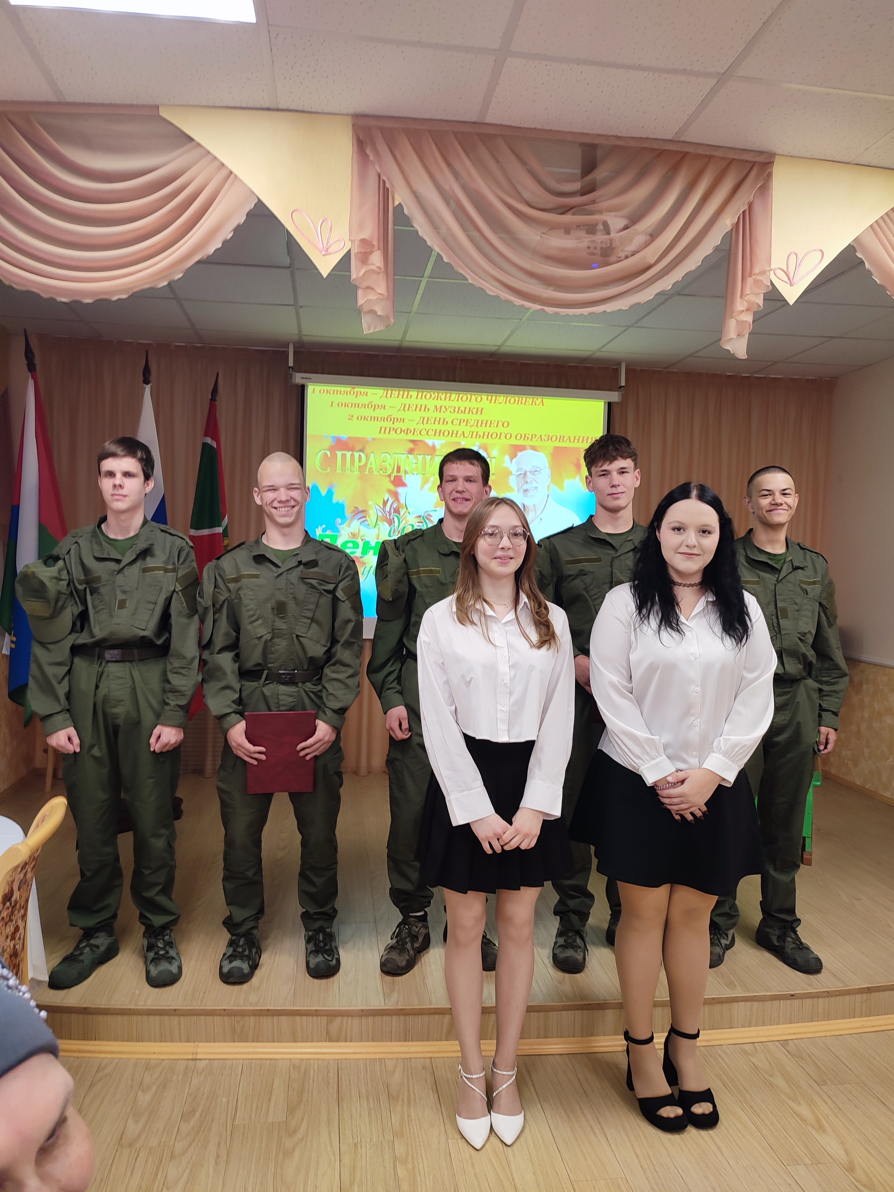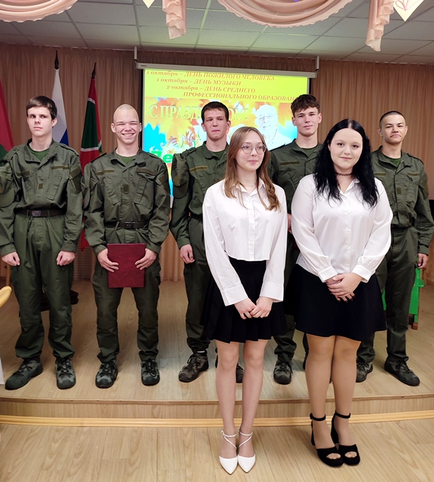 Трогательное поздравление подготовили первокурсники: Виктория Пономарева, Юлия Варицкая (группа ОД-1-25в), Антон Антошкевич, Захар Жданов, Степан Рогов, Матвей Шалякин, Егор Юдахин (группа ТЭ-1-25в).