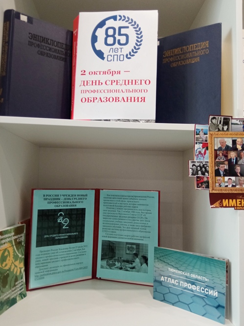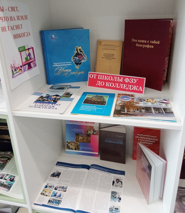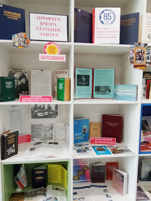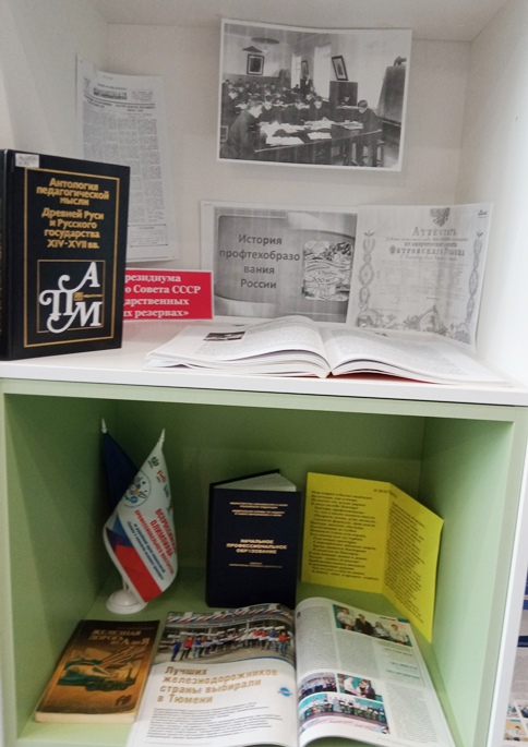 В рамках празднования юбилея СПО в читальном зале библиотеки колледжа открылась выставка-история «Профтех вчера, сегодня, завтра». На выставке представлена информационные материалы и книги по истории становления профессионального образования в нашей стране, в Тюменской области, а рубрика «От школы ФЗУ до колледжа» рассказывает об историческом пути нашего колледжа: от трудовых резервов к современной системе.