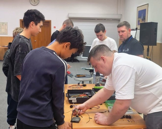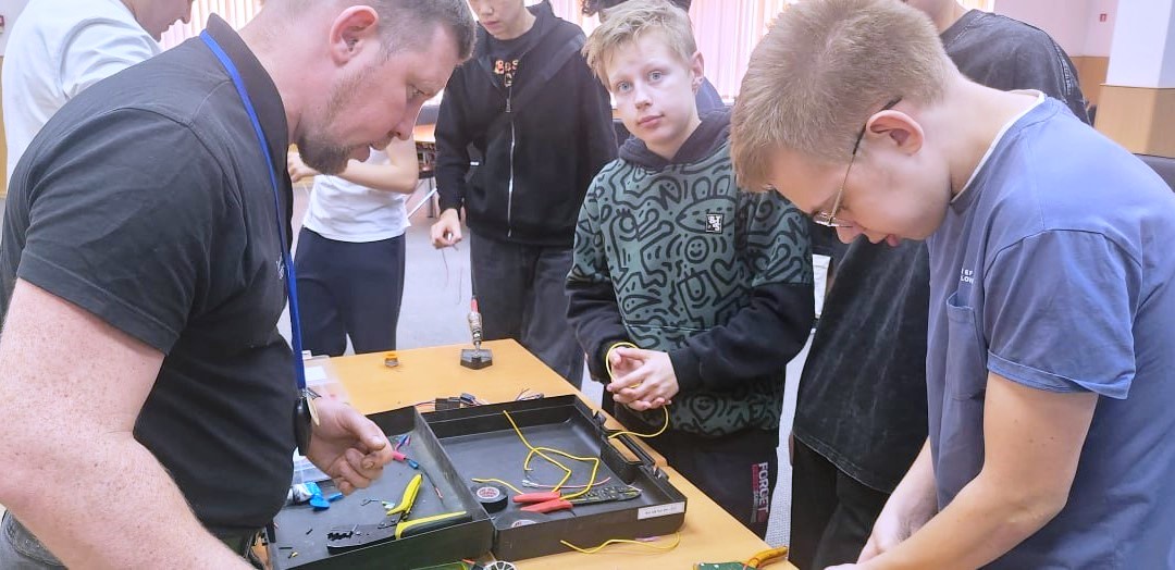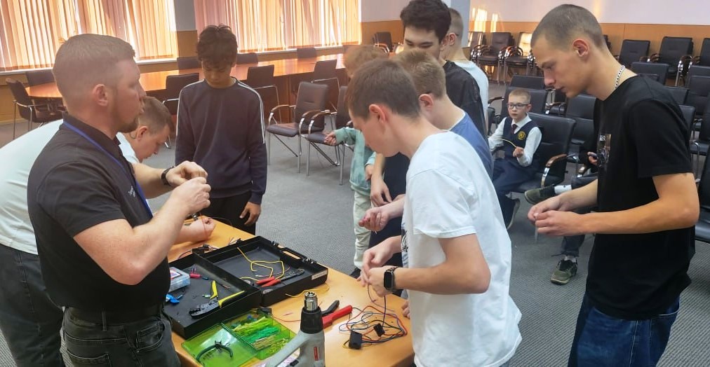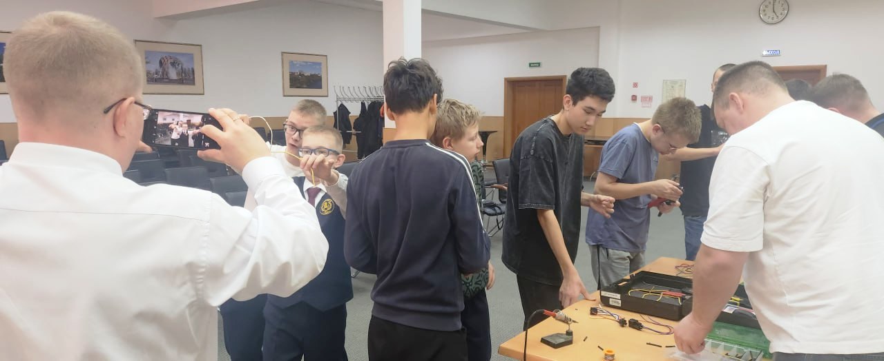 С использованием паяльников, электрофена, пластиковых расходников для электропроводов учащиеся проводили монтаж электропровода, шин и соединений проводки электрооборудования автомобиля и электромобиля. Отрабатывали навыки по поиску и устранению обрывов в электропроводке автомобилей и электромобилей.