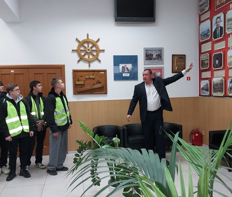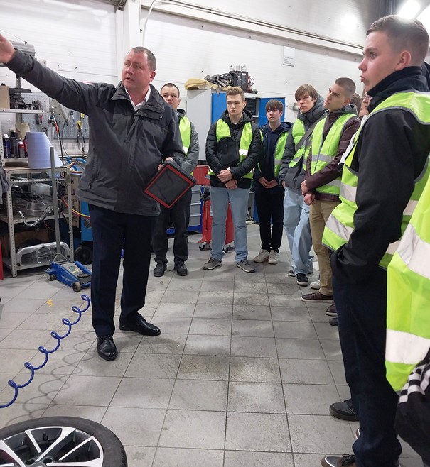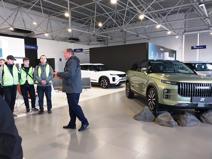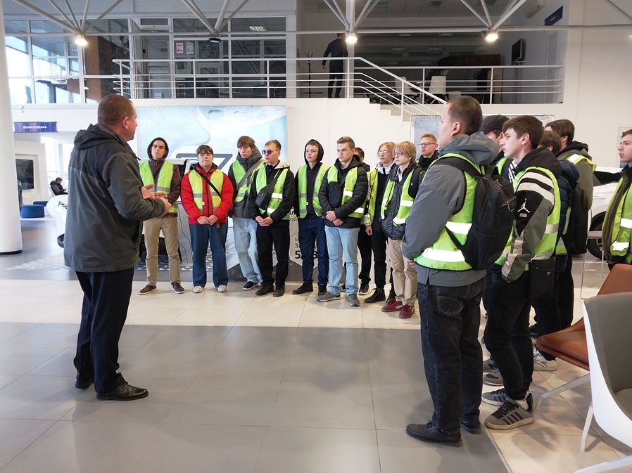 Экскурсия началась с рассказа об истории компании, с большим уважением речь шла о людях, которые сделали многое для становления предприятия. Посетили площадки, на которых происходит оформление и покупка, ремонт и мойка автомобилей. В процессе экскурсии студенты познакомились с работой технических и сервисных специалистов автоцентра, а также посетили выставочные залы. На протяжении всей экскурсии Евгений Александрович заботливо напоминал ребятам о необходимости соблюдения техники безопасности