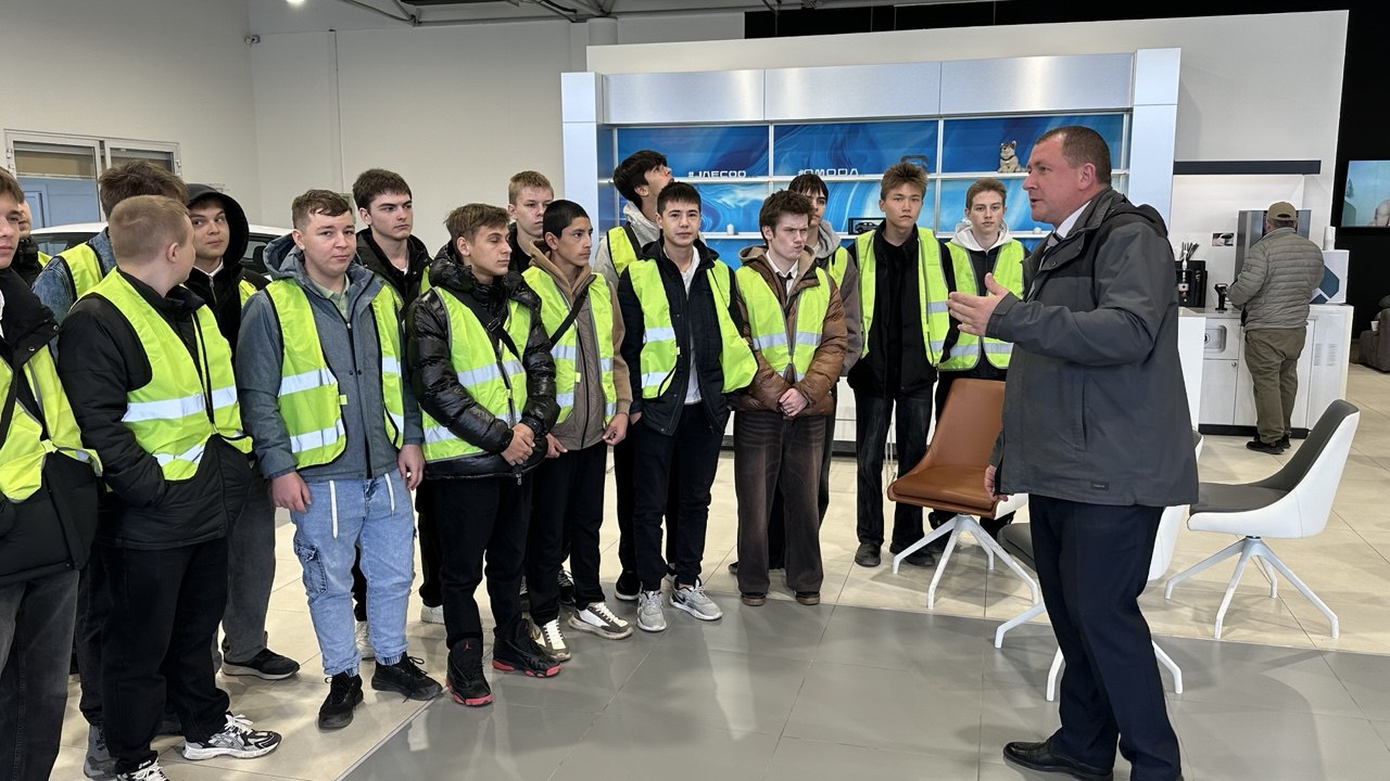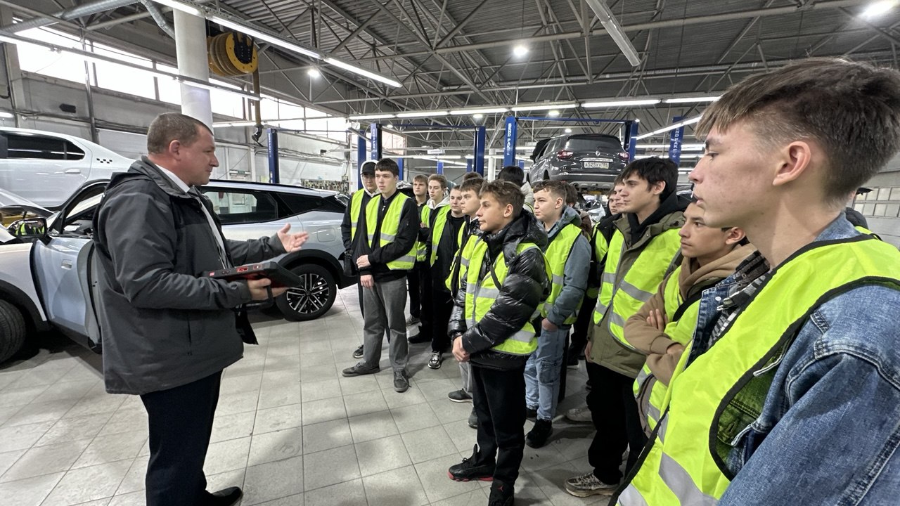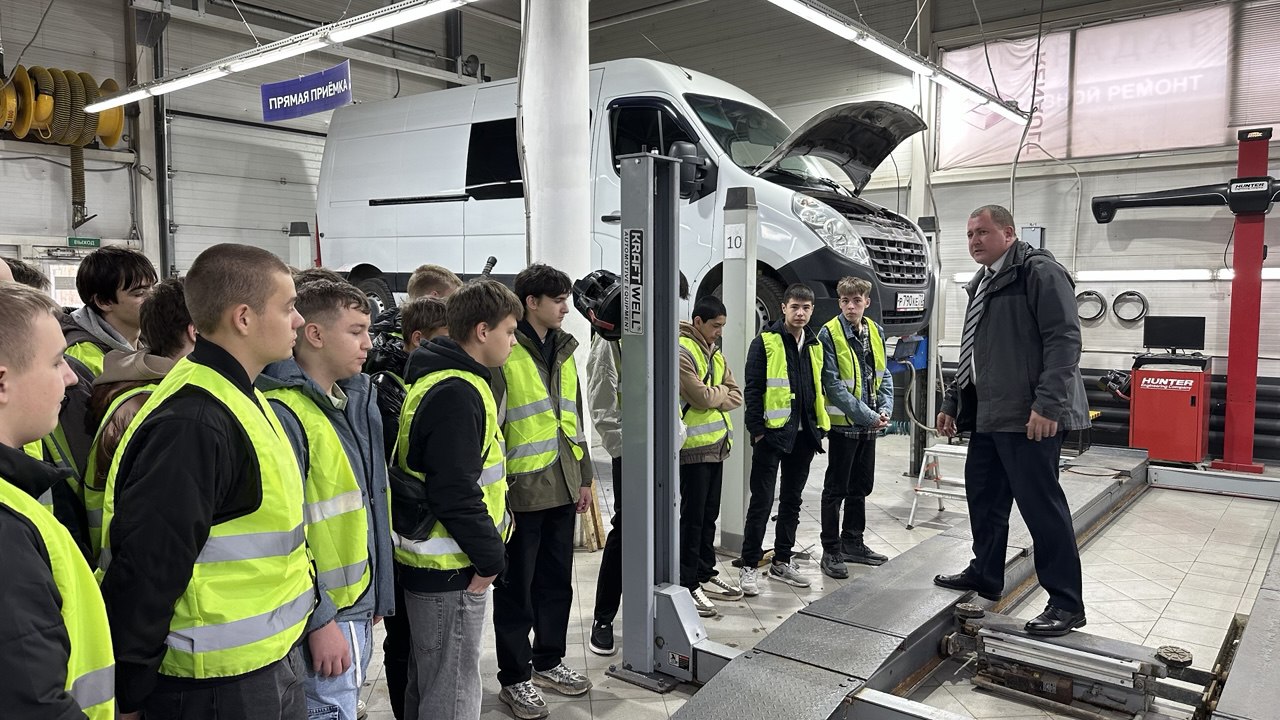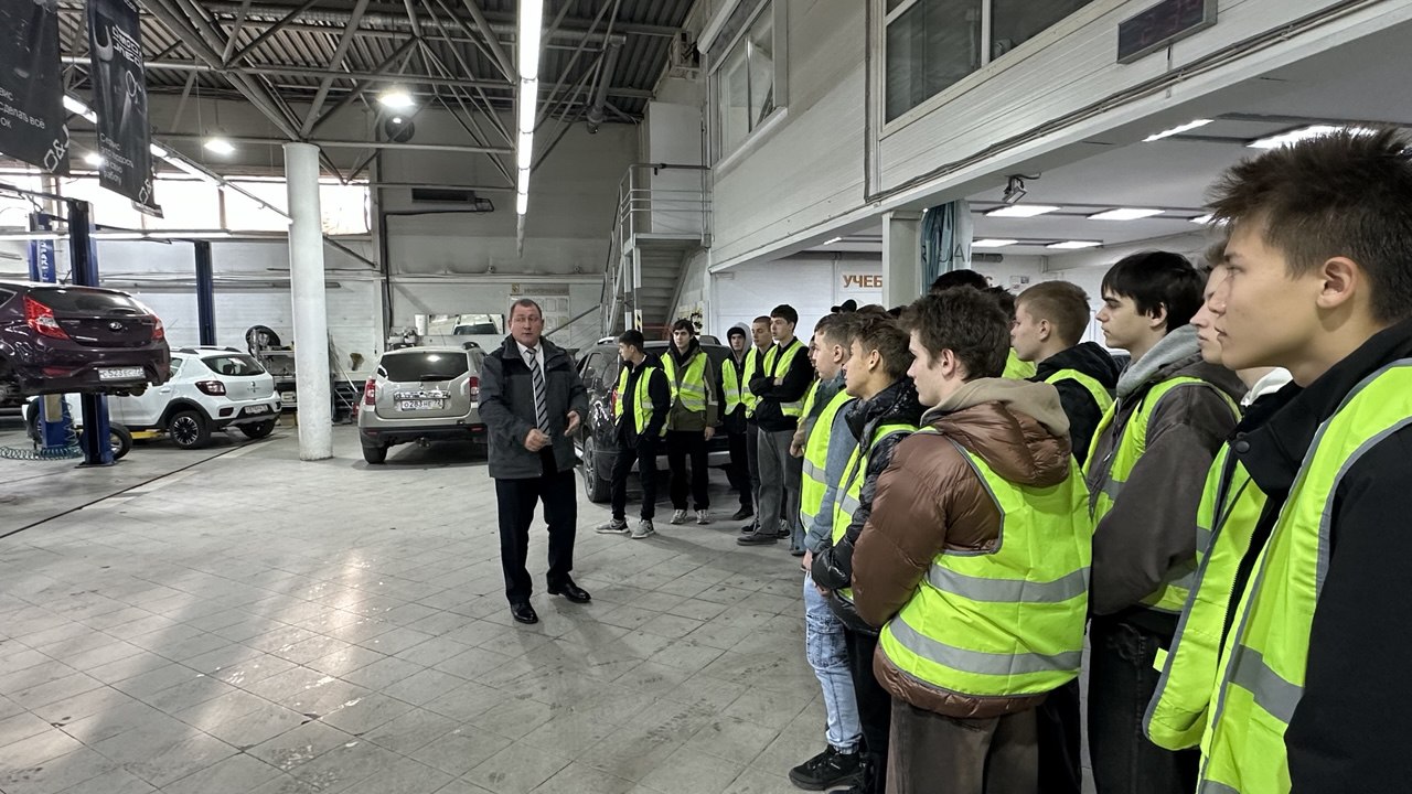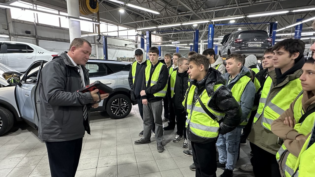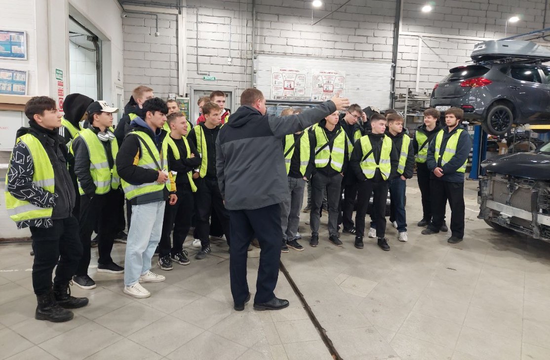 После того, как ребята узнали об истории возникновения и развития крупнейшего автомобильного холдинга, Евгений Александрович провел для них экскурсию по ряду салонов и цехов компании. Студенты познакомились с работой автосалонов, пообщались с сотрудниками, посетили центр кузовного ремонта и другие цеха, где смогли увидеть, как проходит работа по текущему ремонту и обслуживанию автомобилей. Там же встретили ребят – бывших и нынешних студентов колледжа, кто пожелал сотрудничать с компанией, иметь достойный заработок и перспективы дальнейшего развития.