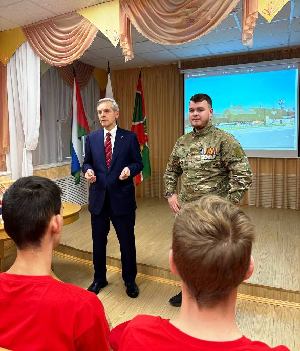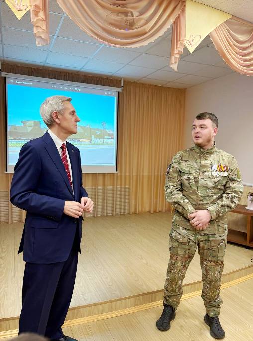 Кроме того, на встрече присутствовал, участник специальной военной операции, наш студент Максим Олегович Симонов.