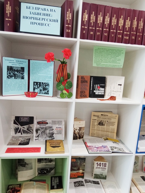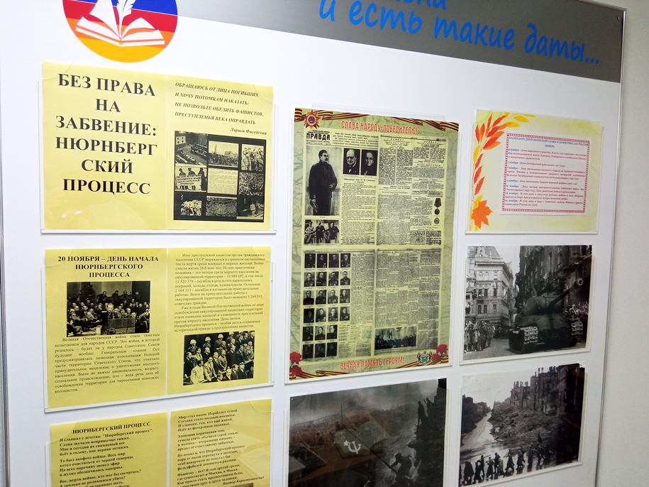 - «Без права на забвение: Нюрнбергский процесс» — обзорная выставка-история в библиотеке, музейном комплексе «Возрождение», посвященная Дню начала Нюрнбергского процесса (20 ноября);