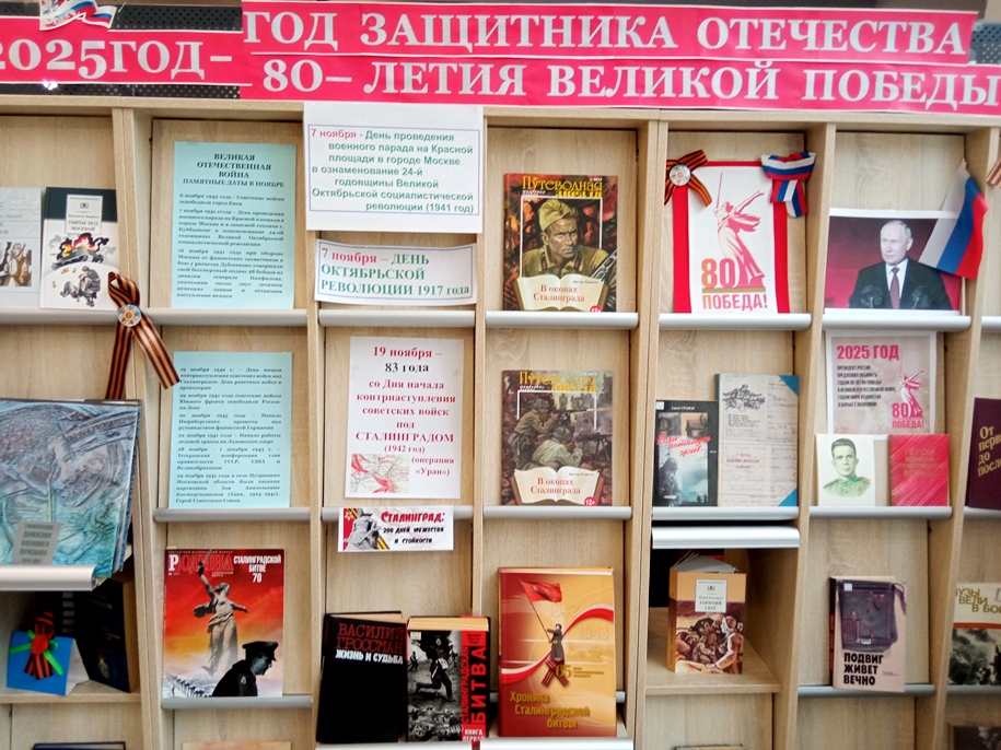 - «Через года, через века – помните» — выставка-панорама, посвященная Году 80-летия Великой Победы, Году защитников Отечества. Разделы в ноябре: 7 ноября — День проведения военного парада на Красной площади в городе Москве в ознаменование 24-ой годовщины Великой Октябрьской социалистической революции (1941 год), «19 ноября – День начала контрнаступления советских войск под Сталинградом (1942 год) (операция «Уран»)»;