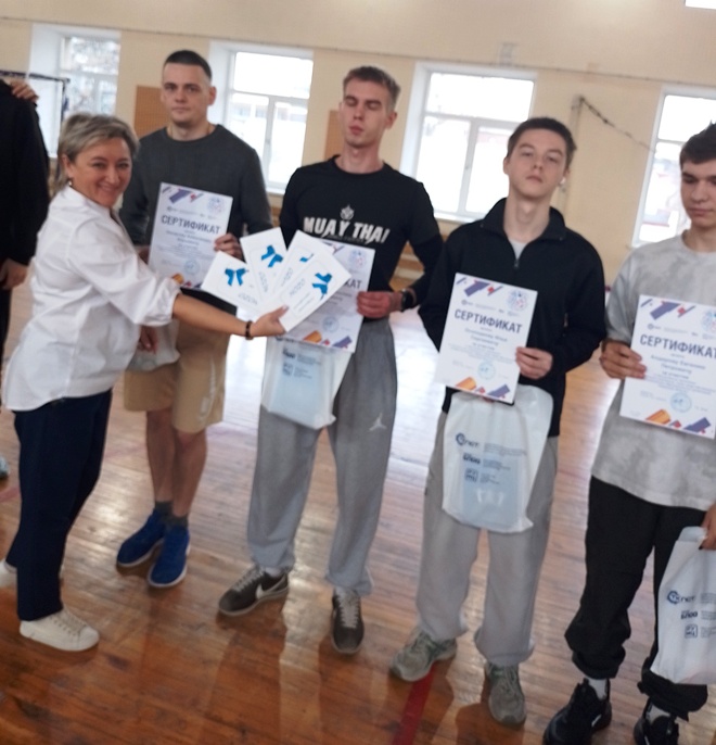 Благодарим наших спортсменов: Илью Осолодкова (группа СКкп-1-24в), Евгения Алдарова (группа СКкп-1-24в), Александра Захарова (группа ТЭП-1-24в) и Святослава Доценко (группа ПМА-1-24в).