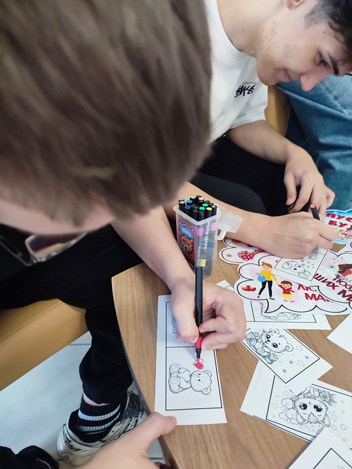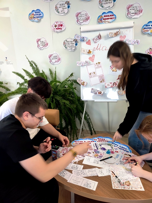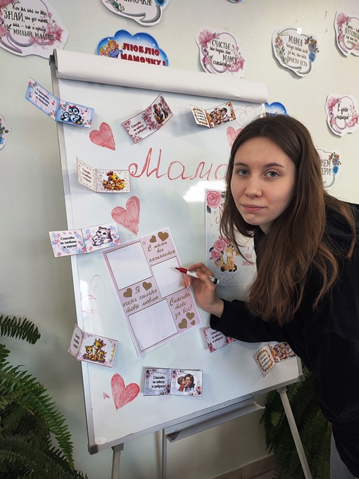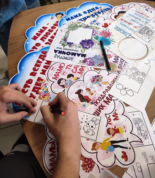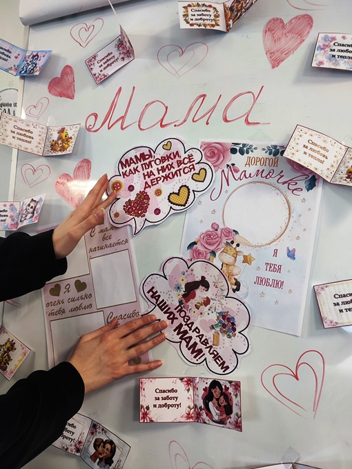 Акция дает возможность выразить любовь и признательность мамам через представленные фотографии и теплые слова. Участникам предложили украсить карточки своими пожеланиями и сделать снимки с тематическими аксессуарами. Это объединило арт-терапию и визуальную коммуникацию.