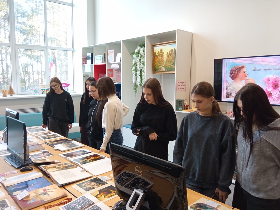 «Мы прославляем женщину с ребенком на руках» – урок художественной культуры с обзором иллюстративной выставки-галереи «Образ бережно хранимый», посвященный Дню матери, организован в библиотеке заведующей информационно-библиотечным центром Петровой Надеждой Владимировной. Студентам и педагогам предоставляется возможность прогуляться по иллюстративной галерее искусств, посмотреть на замечательные картины русских и зарубежных живописцев от эпохи Возрождения до современных времен, узнать историю написания картин, каждая из которых создает свой образ матери.