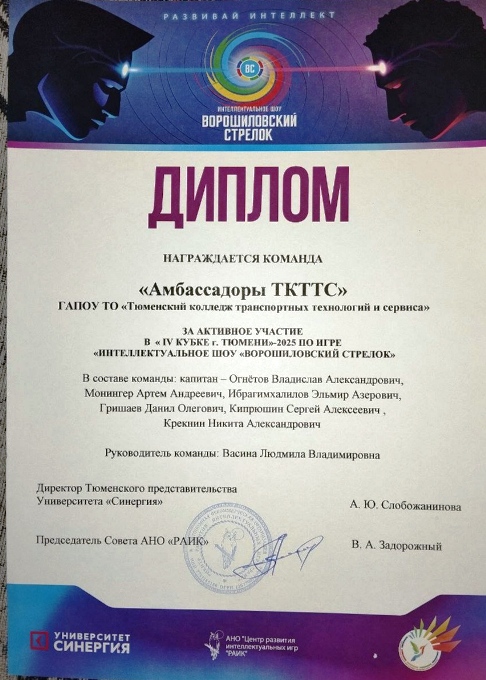Все команды-участники были отмечены дипломами. Также благодарственным письмом был награжден директор колледжа Тамочкин Виктор Николаевич.