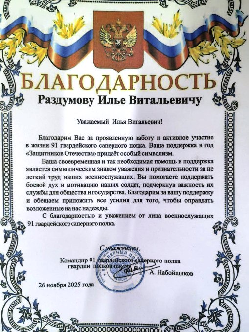 Они активно участвуют в общественной жизни и оказывают поддержку военным подразделениям, поэтому удостоены Благодарности командования 91-го гвардейского саперного полка.