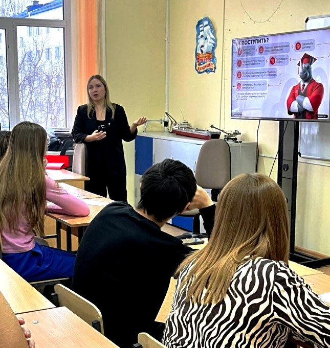 В рамках профессионального ориентирования и содействия трудоустройству выпускников, в колледже прошли встречи со специалистом Тюменского подразделения Университета «Синергия» Камиллой Хренковой, которая познакомила студентов с Университетом.