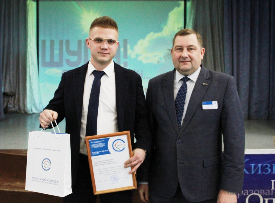 Заместитель директора по учебно-производственной работе Борзенко Николай Федорович выступил с приветственным словом и вручил благодарственные письма социальным партнерам колледжа. Во время торжественной части студенты колледжа отвечали на вопросы о навигации. Творческое объединение «Тюменские речники подарили патриотические номера.