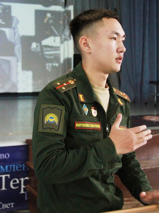 На встрече присутствовали почетные гости: прапорщик Киселев Семен Евгеньевич и старший лейтенант Яшкин Сагандек Серекович. Они представили подробную информацию об училище, его истории, традициях и современном уровне подготовки высококвалифицированных военных инженеров.
