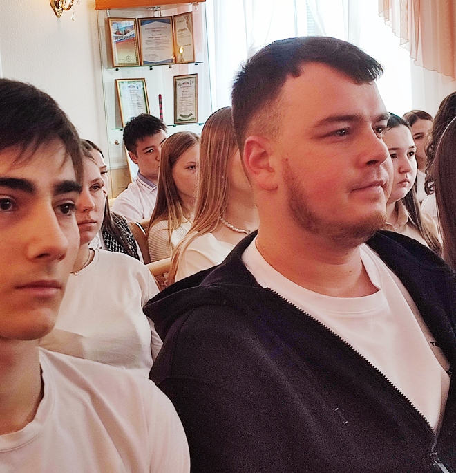 27 января в музейной гостиной колледжа «Память поколений» прошел урок памяти «872 дня Мужества», на котором присутствовали студенты групп ТЭ-1-25в, ОД-1-25в. Было приятно видеть на встрече участника СВО — студента нашего колледжа Максима Симонова.
