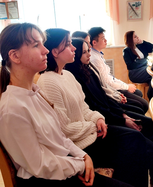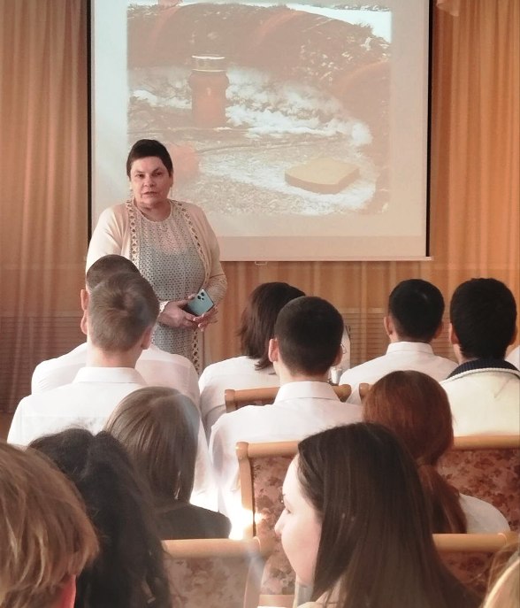 Провели урок Тамара Кузьминична Троянова — руководитель центра патриотического воспитания «Время активных», Петрова Надежда Владимировна – заведующий информационно-библиотечным центром, Винер Ирина Сергеевна – педагог-организатор.