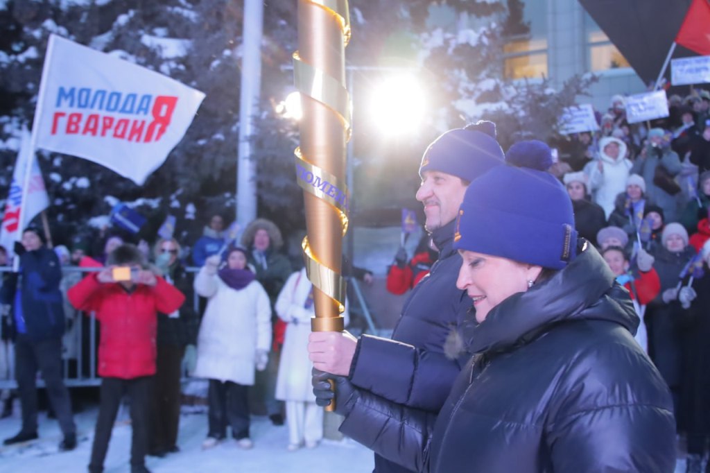 Центральным символом праздника стал факел, установленный в брендированной зоне городской администрации. Факел передали активистке всероссийского движения «Движение первых» Карине Сафиной и спортсмену-триатлонисту Алексею Трофименко. Вместе с другими молодыми участниками они проехали по улицам города на красном двухэтажном автобусе, чтобы горожане почувствовали себя частью события.