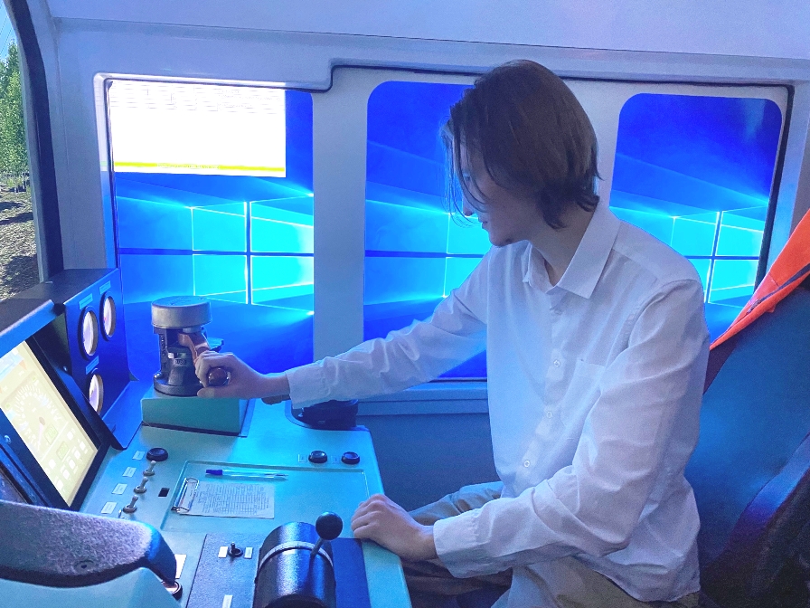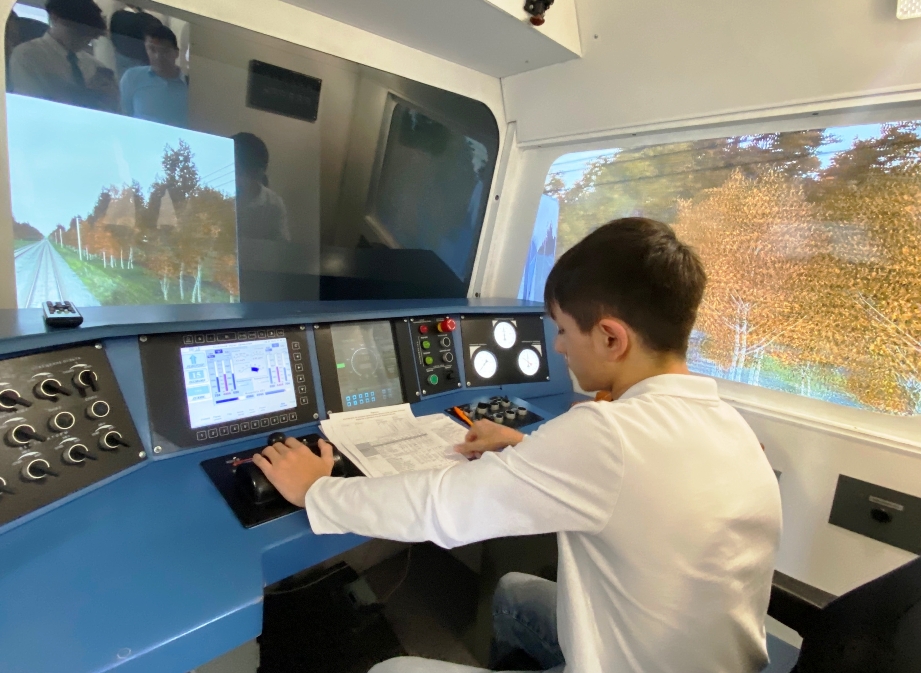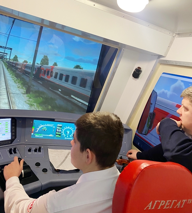 Особое впечатление произвел тренажер управления электровозом и тепловозом, на котором студенты смогли «прокатиться» по виртуальному маршруту, выполняя команды диспетчера и соблюдая правила движения.