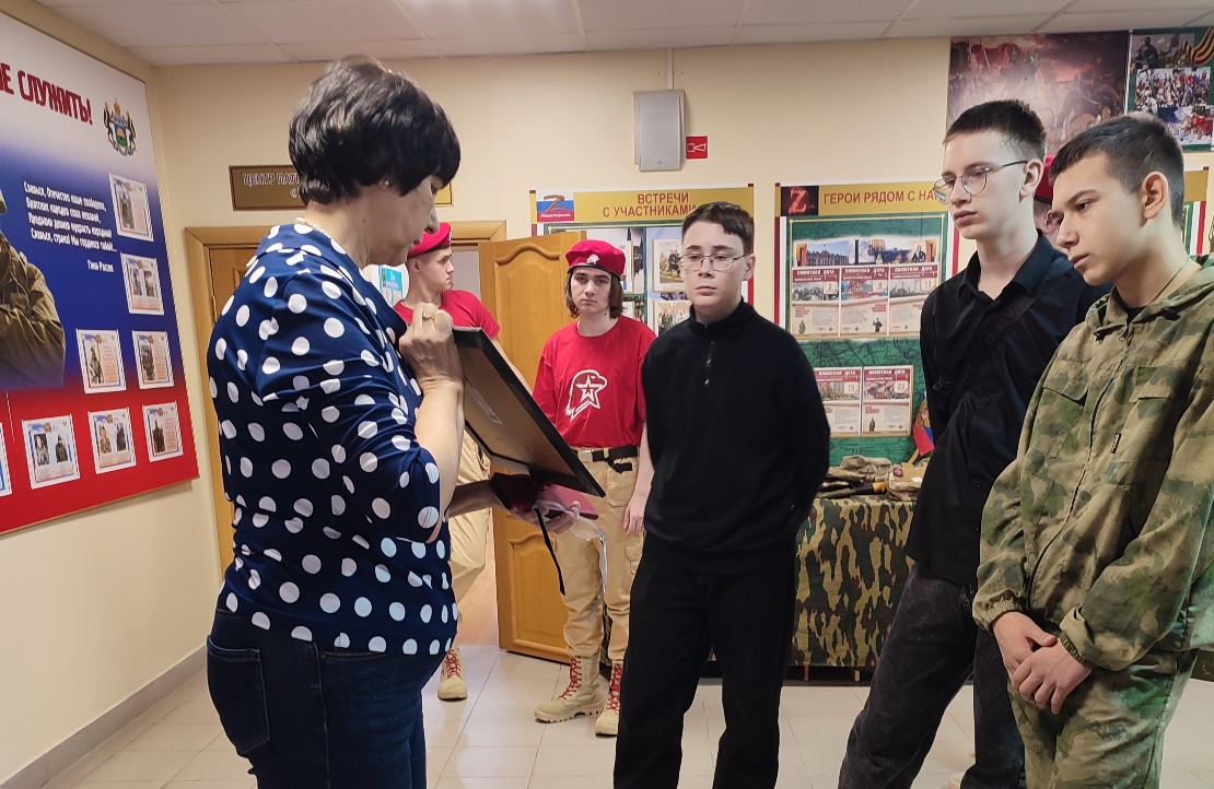 2 февраля в музейный комплекс колледжа «Возрождение» пришли на экскурсию воспитанники ГАУДО ТО «Региональный центр допризывной подготовки и патриотического воспитания «Аванпост», которые сначала вместе со студентами групп ОПУ-1-24в и ОП-1-22в и юнармейцами отряда «Сапсан» посетили музейную гостиную «Память поколений», а затем познакомились с яркими экспозициями музейных комнат.