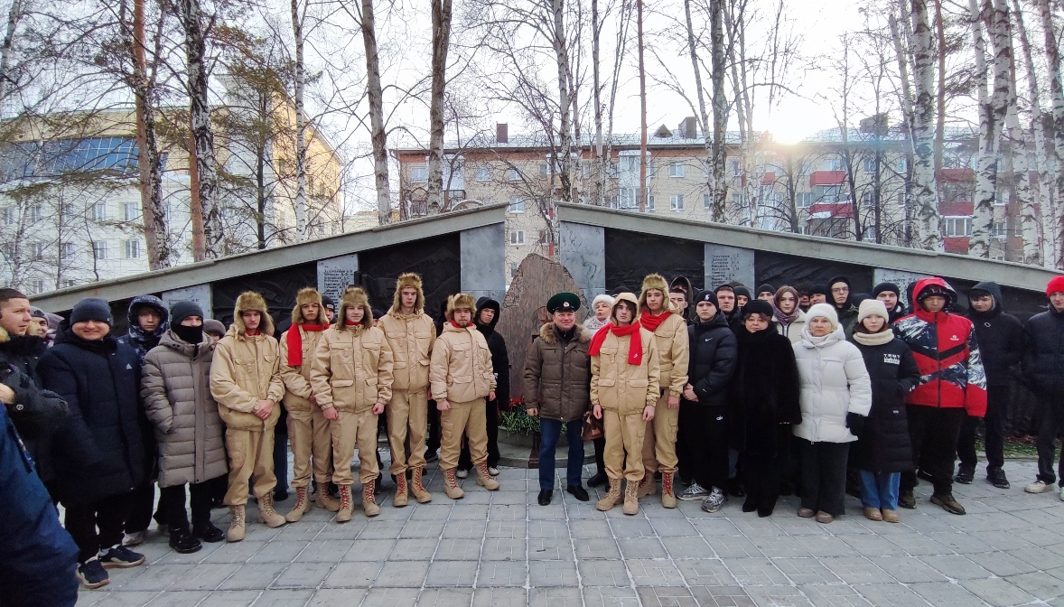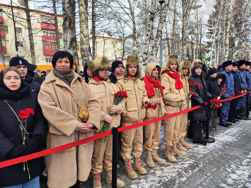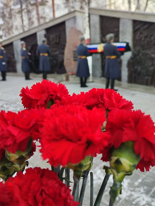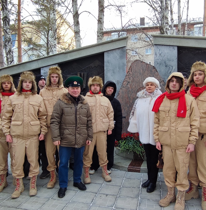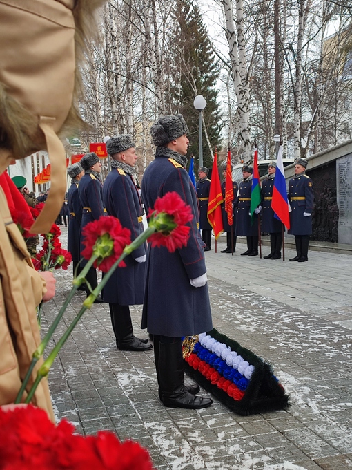 В Тюмени прошла церемония возложения цветов к мемориалу воинам-тюменцам, погибшим в локальных войнах и военных конфликтах, на площади им. И.М. Губкина (проезд Геологоразведчиков, 7).