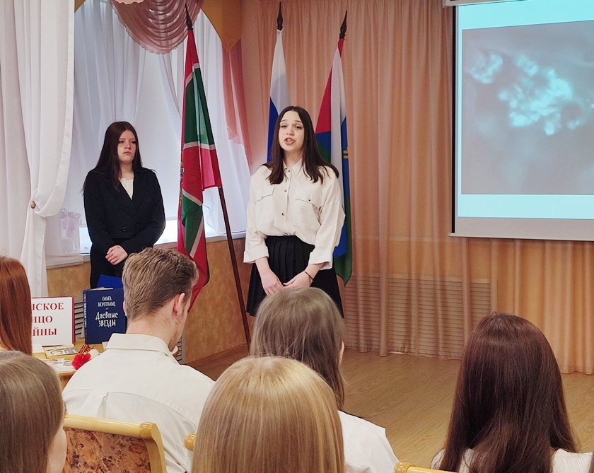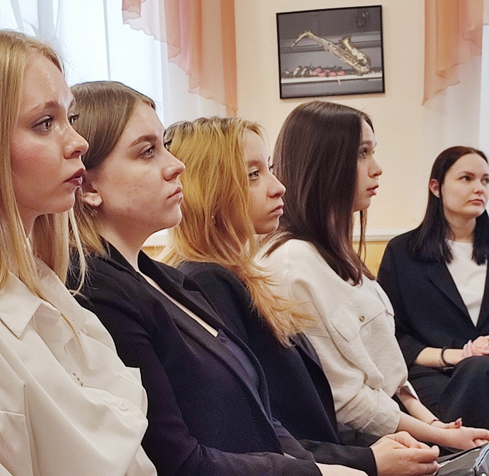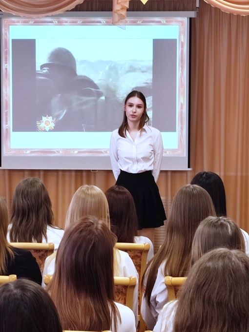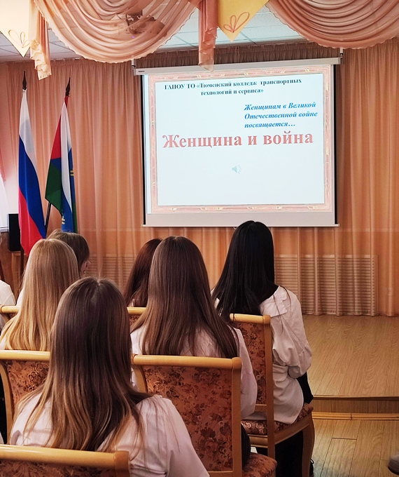 5 марта, в преддверии Международного женского дня, в музейной гостиной колледжа «Память поколений» состоялся Всероссийский урок памяти «Женщина и война», посвященный роли женщин в годы Великой Отечественной войны в группах СТ-1-25в и СТ-1-23в. (преподаватель Зорина Ирина Александровна).