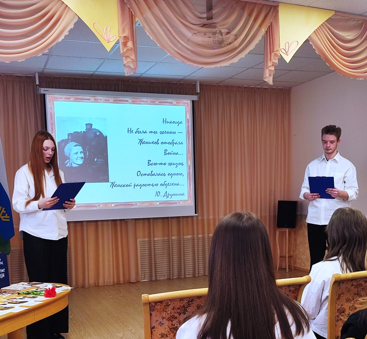 Это мероприятие стало ярким примером уважения и благодарности к женщинам, внесшим огромный вклад в Победу. Студенты узнали уникальные исторические факты о женщинах -железнодорожниках Тюменского отделения Свердловской железной дороги, услышали трогательные воспоминания очевидцев тех суровых времен.