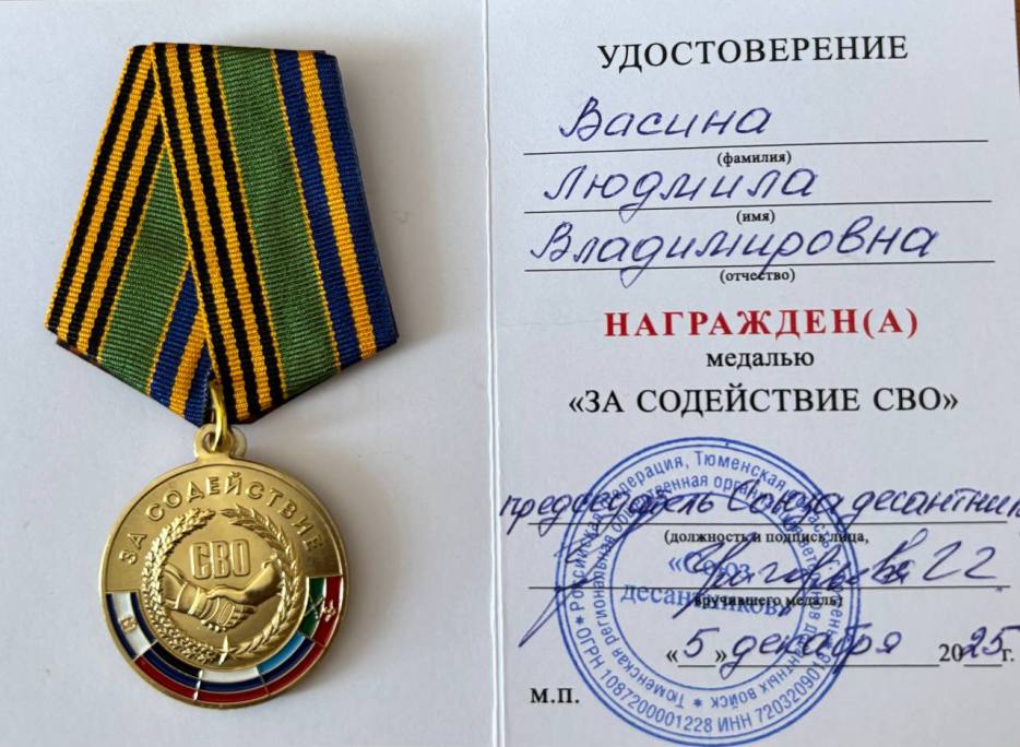 - Евгений Сергеевич Бондаренко, председатель Тюменской городской общественной организации ветеранов десантных войск «Союз десантников» поблагодарили наших студентов и педагогический коллектив, поздравили женщин-волонтеров группы «Войновка. «Подари тепло солдату» и вручили Людмиле Васиной медаль «За содействие СВО». Поздравляем!