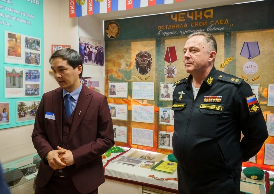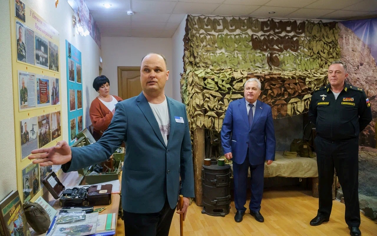 В музейном зале «Традиции побеждать» были представлены экспозиции, посвященные СВО и выпускникам колледжа — участникам специальной военной операции.