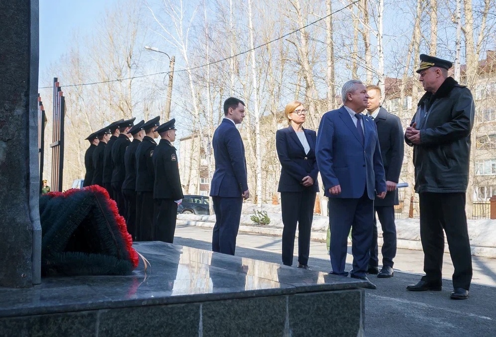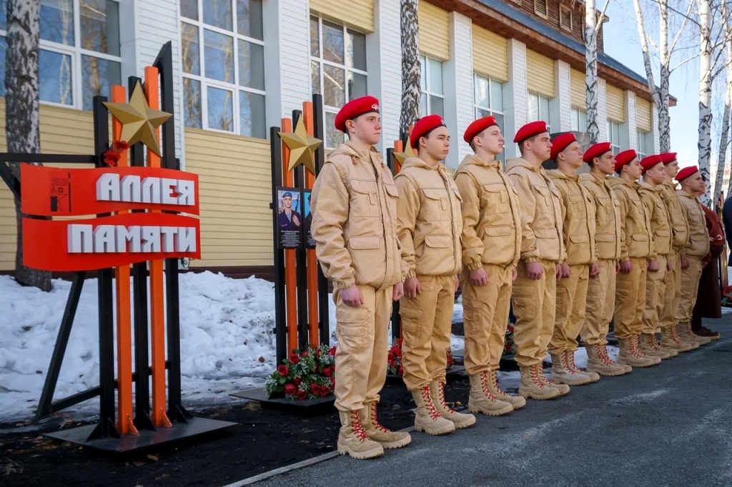Программа визита началась с торжественного построения на Аллее Памяти. Бойцы патриотического отряда «Сапсан» и почетный караул СГ ДПВС «Фрегат» приветствовали высоких гостей. Директор ГАПОУ ТО «ТКТТС» Виктор Николаевич Тамочкин рассказал о деятельности колледжа, обратив особое внимание на значимость мемориальных объектов учебного заведения.