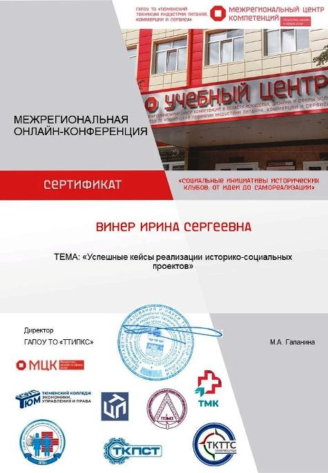 В ГАПОУ ТО «Тюменский техникум индустрии питания, коммерции и сервиса» – Межрегиональном центре компетенций в области искусства, дизайна и сферы услуг состоялась масштабная Межрегиональная онлайн-конференция «Социальные инициативы исторических клубов: от идеи до самореализации».